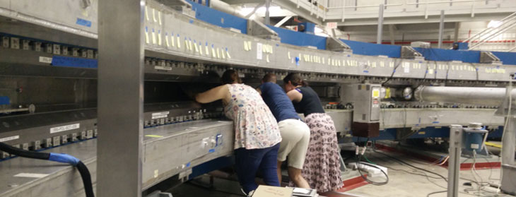 Building a particle detector takes lots of painstaking work, much of it done by graduate students. For Muon g-2, building the tracking detectors, which observe the trajectories of the emitted positrons, required threading wires 25 microns thick through 100-micron-wide holes. Imagine trying to stick a piece of spaghetti through a straw, both small enough for a Lego figurine to use. “That was like a year of our lives just getting wires down tiny holes,” says Saskia Charity, a physics graduate student at the University of Liverpool in England.