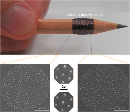 In a feat that puts Rumpelstiltskin to shame, scientists have spun a multitude of high tech materials into bundles of superfine nanowires that are more than 1000 meters long. The new technique, reported online June 12 in Nature Materials, easily produces uniform, orderly arrays of gossamer-thin materials that could have broad use in sensors, energy-harvesting devices and medical diagnostics.