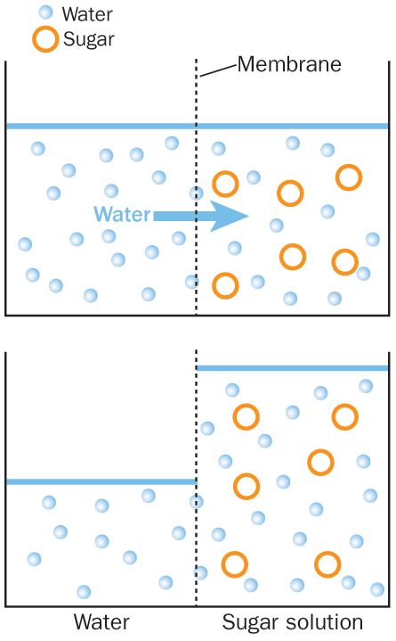 Such loss of information — or increasing entropy — drives many natural processes, such as osmosis, the mysterious migration of water across a membrane. If you dissolve a substance (say, sugar) in a compartment of water, entropy increases. If you have pure water in an adjacent compartment, separated by a membrane that allows water (but not the sugar) to pass through, you’ve created an “entropy gradient” — lower entropy on one side of the barrier than the other. So the pure water will flow through the membrane to the sugar side, increasing the entropy of the system until equilibrium is reached.