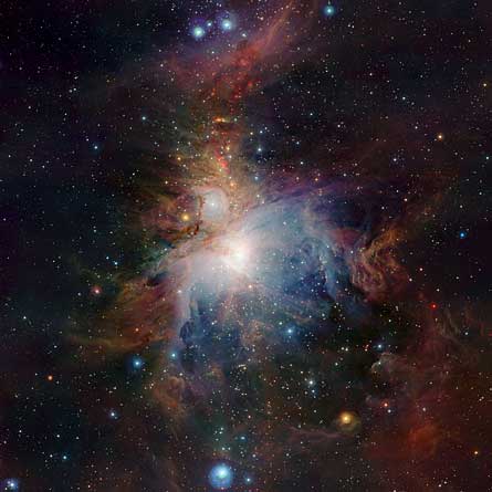 Using its infrared eyes to peer into the dusty center of the Milky Way’s Orion star-forming region, the world’s largest panoramic telescope has produced a revealing new portrait of this familiar stellar nursery. The image was taken at the Paranal Observatory in northern Chile by the new 4.1-meter VISTA (for Visible and Infrared Survey Telescope for Astronomy) telescope, which records large sections of sky in a single exposure.
