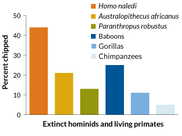 In further tooth comparisons with living primates, baboons — consumers of underground plants and hard-shelled fruits — showed the greatest similarity to H. naledi, with fractures on 25 percent of their teeth. That figure reached only about 11 percent in gorillas and 5 percent in chimpanzees.