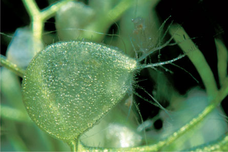 And as plant scientists relish pointing out, some plants do move in animal time, especially those that hunt animals for food. When it lands inside the open jaws of a Venus flytrap, a fly may jog trigger hairs. An electrical signal zaps through the plant tissue and the two sides of the trap can close like a book in less than a second. And a water flea that bumbles into a little cup of a bladderwort likewise confronts the peril of touch-sensitive triggers. A trapdoor opens within 30 milliseconds, and the flea whooshes down into a digestive chamber.