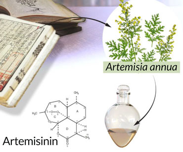 The modern drug has ancient roots. In 1967, China began Project 523, a national effort to combat malaria. As part of the project, Tu and her colleagues combed through over 2,000 traditional Chinese herbal recipes. A compound found in the sweet wormwood plant (Artemisia annua) showed promise. After seeing that the extract was able to fight Plasmodium infections in mice and monkeys, Tu tested the preparation on herself to make sure it was safe.