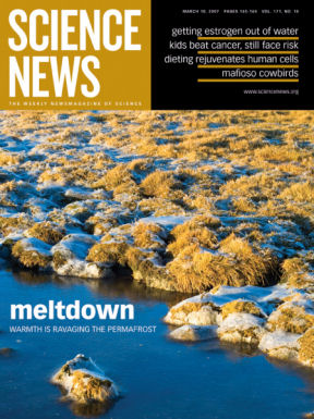 Researchers are observing many new phenomena in the Arctic—most of them related to the world’s changing climate. Globally, 11 of the 12 years from 1995 to 2006 are among the dozen warmest since the mid-1800s, scientists of the Intergovernmental Panel on Climate Change reported last month (SN: 2/10/07, p. 83: Available to subscribers at From Bad to Worse: Earth’s warming to accelerate). Average temperatures worldwide have risen about 0.7°C in the past 100 years, but those in the Arctic have risen even more. In high-latitude portions of Alaska and western Canada, average summer temperatures have increased by about 1.4°C just since 1961 (SN: 11/12/05, p. 312: Available to subscribers at Runaway Heat?).