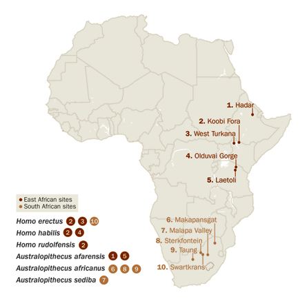 Hominids capable of traveling long distances evolved in Africa by 2.5 million years ago, so it’s hard to know where on the continent Homo first appeared, comments anthropologist Brian Richmond of George Washington University in Washington, D.C.