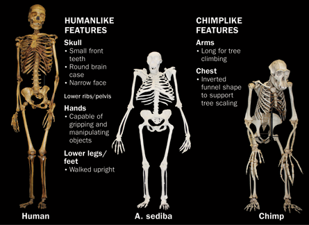 SKELETAL SURPRISES Anatomically, A. sediba possesses a strange combination of human-like and ape-like features.