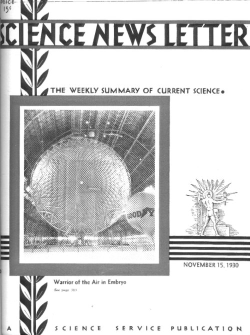 The first gas cell of the new U.S. Navy airship, Akron, which will be the largest and safest lighter-than-air craft in the world, was being tested when the photographer took the picture on the front cover at the Akron airship dock, Akron, Ohio, where the ship is being built by the Goodyear-Zeppelin Corp.