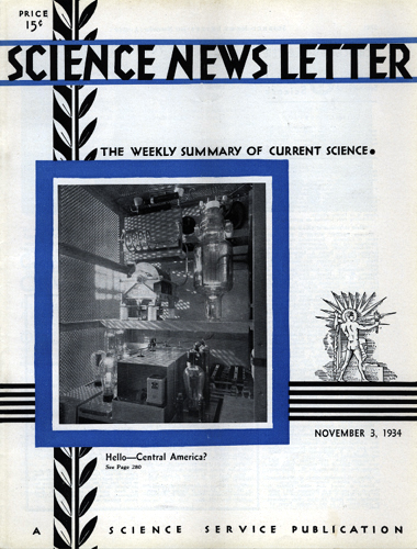 Interior of one of the transmitters built in the Bell Telephone Laboratories for the Central American radio-telephone service is the subject of the illustration on the front cover of the Science News Letter.