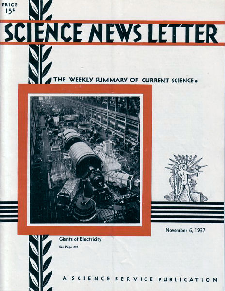 Giant generators, each producing enough electricity to light the lamps in a million homes, are shown undergoing tests at the Westinghouse East Pittsburgh plant in the illustration on the front cover of this week’s Science News Letter.