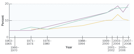 Studies have shown that the offspring of older mothers are more likely to be obese; birthrates have increased since the 1970s among women 30 and older.