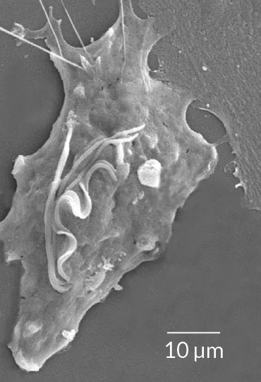 At a dead end, Mercer took a second look at phagocytosis. And indeed, chemicals that prevent phagocytosis stopped neutrophils from killing T. vaginalis. “We were confused,” Mercer recalls. “How is the neutrophil engulfing something that is bigger than it?”