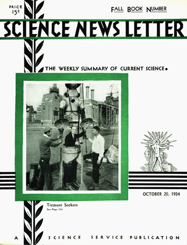 Pictured on the front cover of this week’s Science News Letter is the latest diving equipment designed for a search for $4 million in gold in the East River near Hell Gate Bridge, New York City. The treasure is believed to be aboard the British frigate Hussar, which is reputed to have sunk en route to New York with pay for British Revolutionary troops.