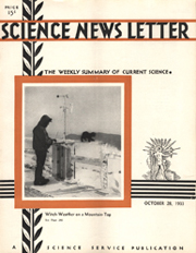 Not ancient warlocks making weather but modern scientists just making a record of it, unintentionally posed a good Halloween picture on the top of Mount Washington, with the aid of a cat that doesn’t like the wind. The photograph has nothing of the mellowness of autumn about it–quite naturally, since it was taken during the winter, when Polar Year studies were being conducted on what is perhaps the windiest mountaintop in eastern North American. So violent are the gusts there at times that a witch could easily take a sky-ride on a broomstick without invoking any supernatural aid at all.