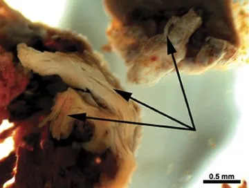 The researchers dissolved minerals from the fossil by soaking it in a series of slightly alkaline solutions. After a week, much of the remaining material was surprisingly soft and pliable, say the researchers. Many parts of the remains were translucent and fibrous, and they retained their elasticity after repeated cycles of dehydration and rehydration. Schweitzer and her colleagues report their findings in the March 25 Science.