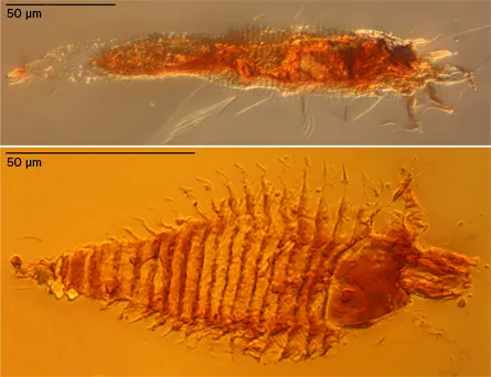The golden globules are about the size of a grain of rice. The creatures are visible only through a microscope as tiny flecks that mar the fossilized resin’s clarity. “You can see these little critters in all their lifelike glory — it’s really quite amazing,” says paleoentomologist Michael Engel of the University of Kansas in Lawrence.