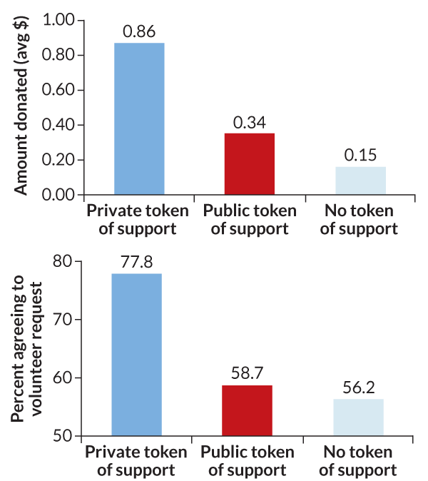 Charities generate a lot of publicity through online campaigns, “but seeking public expressions of token support may not attract new donors,” Kristofferson says.His warning applies not only to online outfits obsessed with collecting “likes” from admirers but to organizations that exhort people, say, to wear ribbons in support of medical research.