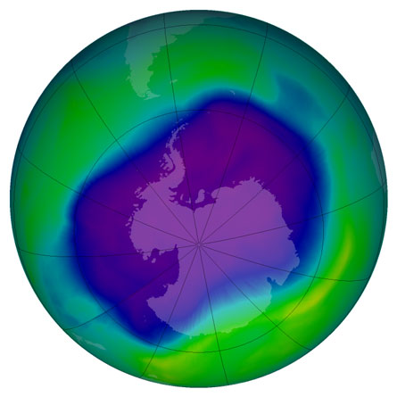 First spotted in 1985, the Antarctic ozone hole was quickly linked to chemicals called chlorofluorocarbons, emitted mainly in the Northern Hemisphere but concentrated over the South Pole by atmospheric circulation patterns. Chlorine atoms from these CFCs react with ozone molecules, seasonally destroying the layer that shields Earth from cancer-causing and crop-damaging ultraviolet radiation.