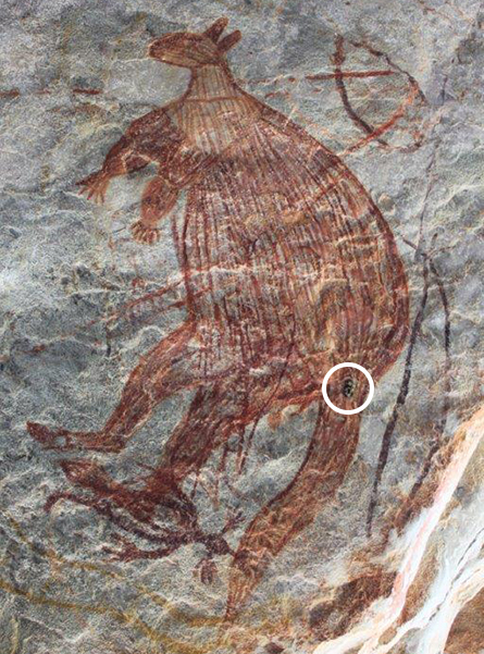 AUSSIE ART Researchers say they have dated this ambiguous figure, painted on a cave ceiling in northwestern Australia, to at least 16,000 years ago. If that estimate holds up, it supports the idea that some of the continent’s earliest human inhabitants created rock art.