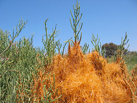 For the most part, the 100 to 170 dodder species have abandoned both photosynthesis and normal roots, the standard means that plants use to acquire food. If tiny dodder plantlets don’t find a host plant to glom onto they’ll die within a week. The parasites actually sniff the hosts out, homing in on airborne host chemicals, researchers reported in Science last year.