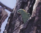 A female yellow-naped Amazon parrot peers out of her nest. Wright