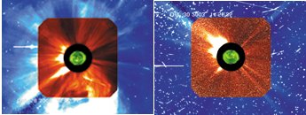 SOHO instruments, for example, directly measure the speed and strength of clouds of charged particles headed for Earth, providing researchers with early warnings of approaching space storms. The Space Environment Center, operated in Boulder, Colo., by NOAA and the U.S. Air Force, was particularly busy last fall distributing warnings worldwide about the solar disturbances that had the potential to affect people, satellites, and infrastructure.