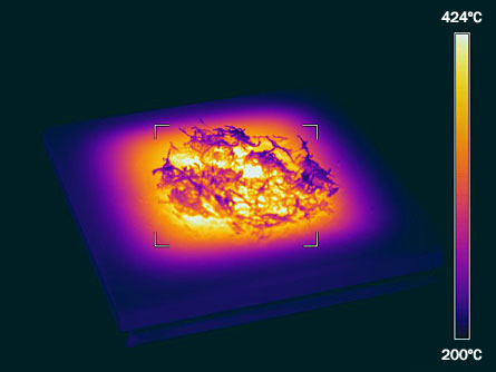 During their tests, the researchers used thermal-imaging sensors to detect the excess heat produced by materials during combustion. Matches and paper lit at oxygen concentrations as low as 13 percent but quickly burned out, says Belcher. For the natural materials the researchers tested, including pine wood and sphagnum moss, combustion didn’t occur at oxygen levels below 15 percent, and sustained, vigorous combustion didn’t proceed unless oxygen levels were 17 percent or higher.