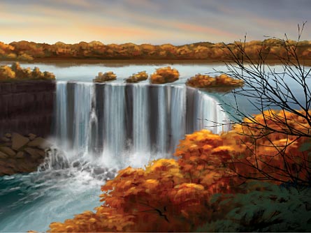 The thundering roar at the base of Niagara Falls is awesome indeed. On an average summer day, about 40 million gallons of water spill over the half-mile–wide Canadian portion of the cataract each minute. After falling over a cliff taller than a 16-story building, water pummels the rocks below, incessantly eroding the base of the cliff and triggering rockfalls. Before the 20th century, when engineers weakened the Niagara River by diverting some of its flow to produce hydroelectric power, the falls marched upstream an average of more than a meter per year.