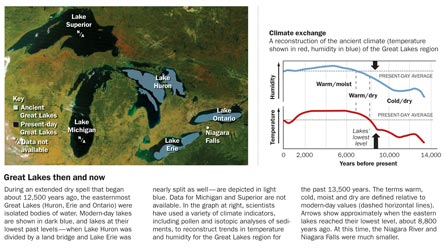Compared with today, water levels in the Great Lakes seesawed wildly after the last ice age, including occasional big rises. And evidence also suggests that some lakes were overflowing while others were evaporating away.