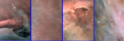 The portrait also reveals how shock waves, in response to ionizing radiation and winds from the quartet in Orion, sculpt surrounding space into pillars and other shapes. Massive stars not only have a strong influence on their surroundings but also are considered the first type of stars that formed in the universe.
