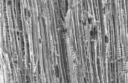 They first soak blocks of pine and poplar in an acid bath to remove lignin, a gluelike substance in the wood, and then move them into a solution containing mineral-forming silica. Next, the team heats the dried, silica-infused wood to 1,400°C in an argon-filled furnace. The process binds silica to the carbon in wood’s cellulose.