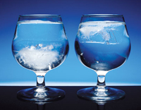 Ice cubes made of heavy water will sink (left), unlike ice cubes of the ordinary variety (right).