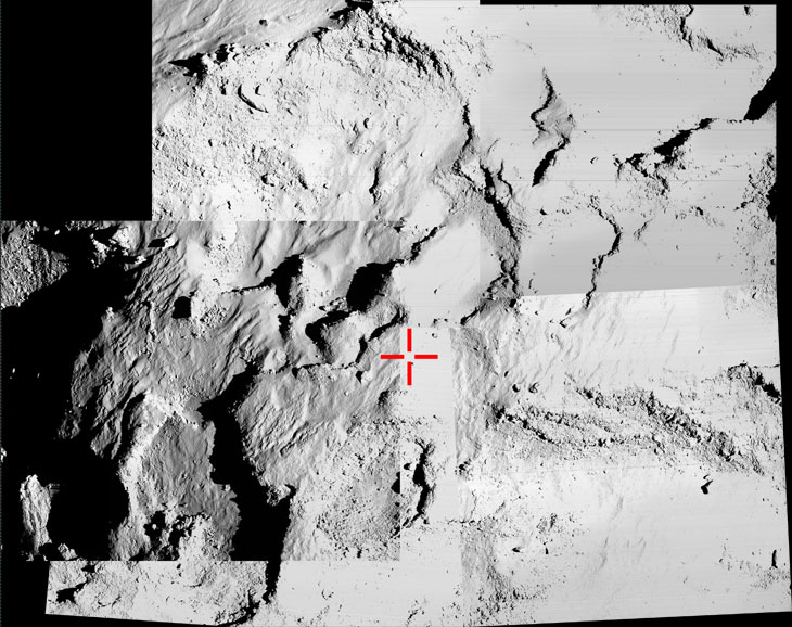 DARMSTADT, GERMANY — Philae may be in a tough spot, literally. After touching down on comet 67P/Churyumov-Gerasimenko, the Rosetta mission’s robot has been beaming back striking but somewhat unsettling views of the comet.