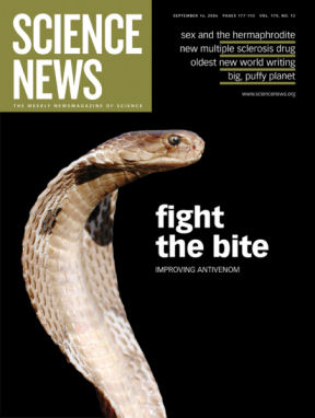 Biardi and his colleagues are currently examining California ground squirrels, a species that’s resistant to rattlesnake bites. These small mammals adopt menacing postures, throw dirt, and even bite snakes that encroach on their burrows (SN: 10/9/99, p. 237). In a study published in the November 2005 Journal of Chemical Ecology, Biardi’s team described its geographic survey of venom neutralizing among hundreds of ground squirrels in California.