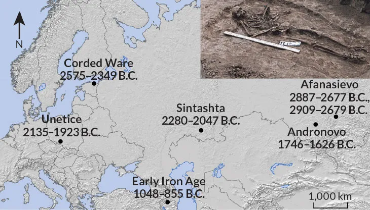After screening about 89 billion pieces of DNA from teeth of 101 Bronze Age and Iron Age individuals, Willerslev’s team found Y. pestis DNA in seven of them. Two came from Siberia’s roughly 4,800-year-old Afanasievo culture. One approximately 4,500-year-old individual belonged to Estonia’s Corded Ware culture. An infected person from West Asia’s Sintashta culture lived almost 4,200 years ago. A skeleton from the Unetice culture in Poland dates to more than 4,000 years ago, and one from Siberia’s Andronovo culture is about 3,700 years old. An infected individual from the early Iron Age in Armenia lived close to 3,000 years ago.