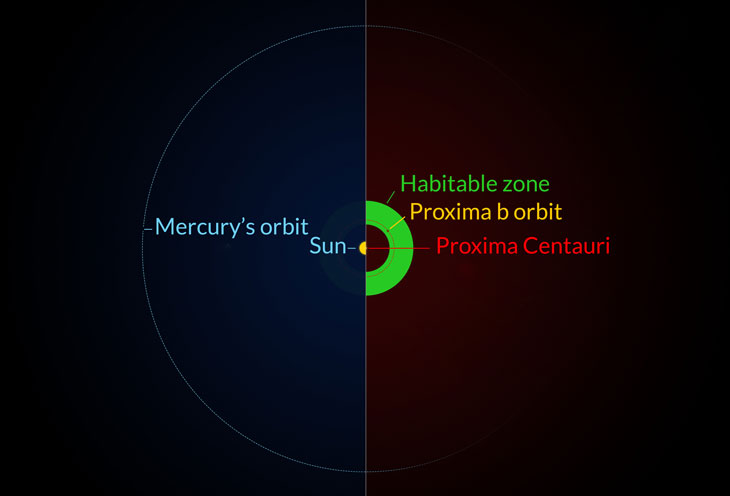Dubbed Proxima b, the planet is cozied up to its star, needing just 11.2 days to complete one orbit. But despite the proximity to its star — just 5 percent of the distance from Earth to the sun — Proxima b is potentially habitable. Its temperature is just right for liquid water to flow on its surface, Guillem Anglada-Escudé, an astronomer at Queen Mary University of London, and colleagues report in the August 25 Nature. That makes Proxima b the closest known world outside our solar system where life might exist.