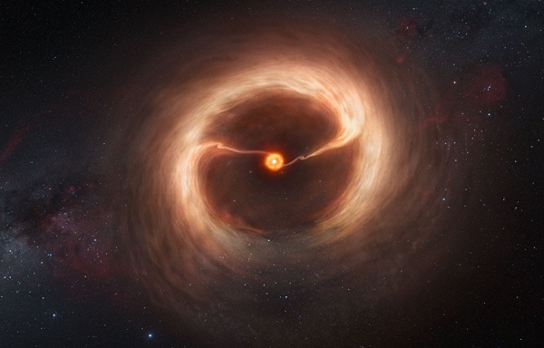 Some 450 light-years from Earth, embryonic planets may be feeding tendrils of gas to the newborn star they orbit. The discovery helps explain how a young star can grow even as budding planets suck up much of the gas and dust around it. Without the tendrils replenishing it, the star’s supply of gas would disappear in less than a year.