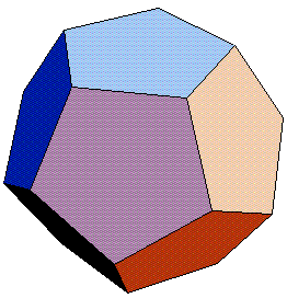 The dodecahedron has 12 faces (a number associated with the zodiac) and 30 edges. All the faces are identical, regular pentagons. It also has 20 corners, or vertices–each one a point where three edges or three faces meet.