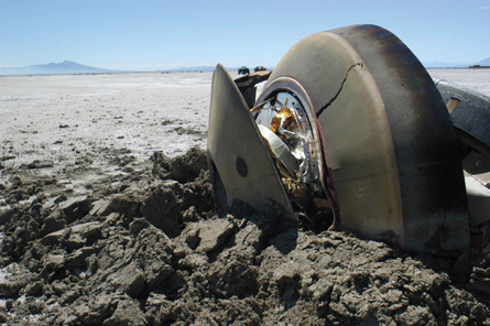 Genesis: This mission to sample solar wind, launched in 2001, crashed in Utah (above) when it returned to Earth in 2004. Scientists managed to extract some samples from the crumpled spacecraft to learn about the chemistry of charged particles flowing from the sun.