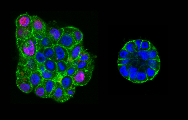 Breast cancer cells suspended in gel and then briefly compressed form orderly balls, just like normal breast cells do when squeezed, Gautham Venugopalan, an engineer and cell biologist at the University of California, Berkeley, reported December 17 at the annual meeting of the American Society for Cell Biology. “We’re not adding any drugs. We’re not changing any genetics,” Venugopalan said. “All we’ve done is basically kicked them and said, ‘you need to be normal now.’”