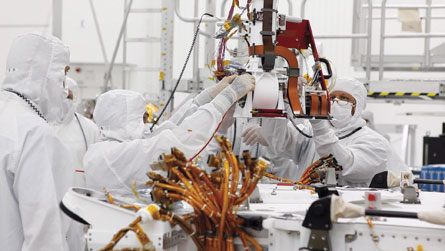 Since 2006, Conley (right) has been charged with preventing Earth from being overrun by extraterrestrial microbes or other contaminants brought back by NASA explorers. She also makes sure spacecraft don’t carry stowaways that could spread to other planets or later be mistaken for E.T. “I’m a policeman, basically,” she says.