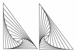 Interestingly, Brocard found the points now named for him in the course of studying the problem of three dogs chasing one another. Instead of focusing on what happens in an equilateral triangle with all three dogs moving at the same speed, he looked at a more general case involving triangles that are not equilateral. However, he still wanted the dogs to meet at the same time and at the same point (the Brocard point). This meant the dogs had to run at different speeds along their spiral paths. Moreover, there were two possible sets of spiral paths, one set for each Brocard point.