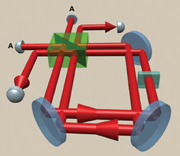 A Japanese-British team has now done even better using four photons at a time. In their setup, the physicists feed the two pairs into an interferometer. Each photon then splits, taking two paths simultaneously in what’s called a quantum superposition of states. The result is one set of four photons forming an entangled state that circulates around the interferometer in one direction, accompanied by another entangled quadruplet circulating in the other direction.