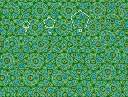 Even that wasn’t such a modest goal, because quasicrystals are pretty odd critters. Slice one in half, and there is a sort of mosaic with repeating shapes like tiles, much like a crystal. But here’s the bizarre part: Spin the resulting mosaic a fifth of a turn and often its tiles will line up exactly as they were before you spun it.