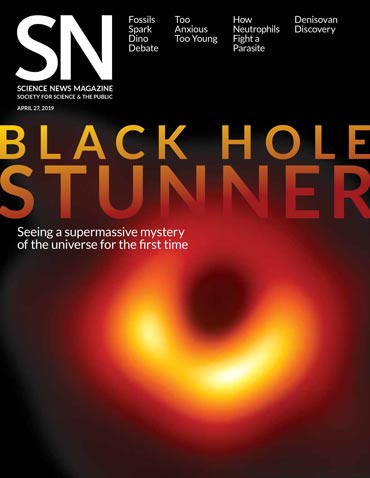 The Event Horizon Telescope captured the first image of a black hole (shown on the cover of Science News at left). Data from the telescope array revealed that the behemoth, which resides at the center of the galaxy M87, is about 38 billion kilometers across and about 6.5