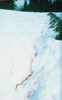 The colors blossoming on snowbank surfaces in springtime are just the tip of the life cycle for snow algae. The red of watermelon snow comes from pigments in algal cysts, resting cells protected by sturdy coats. Hoham has received healthy cyst samples shipped at -70ºC, a temperature that destroyed active algal cells. Using radioactive carbon, Thomas and Duval have shown that cysts photosynthesize, but otherwise they just wait for the next season’s action.