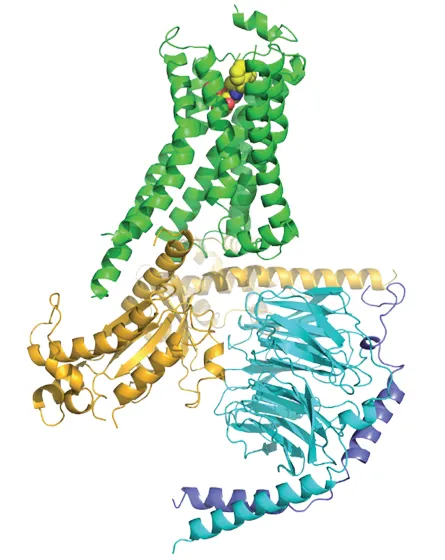 The molecules, called G-protein–coupled receptors, sit in a cell’s outer membrane and identify hormones, odor molecules and other chemicals, transmitting that information to the inside of the cell.