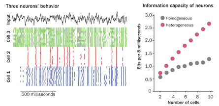 While some scientists are hard at work categorizing all these different cells, others are thinking about what such diversity means for living, breathing animals. New results suggest, for instance, that a population of nerve cells in which individual responses to an electrical poke differ can process more information than a group in which responses are the same. Others think that variety might help the brain cope with a changing environment.