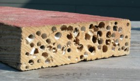 The only outward signs of shipworm intrusion into a piece of timber are the barely noticeable entrance holes. But stick a screwdriver into infested wood, and the wood crumbles like old paper.