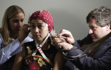 In recent years, insight research has entered a charged new realm. Investigators now track electrical activity in the brain linked to “Aha!” moments. Brain scanners work too slowly to track split-second neural gyrations that precede such revelations. Instead, volunteers wear nets of electrodes over their heads. These studded caps measure electrical responses that flicker and flare across the brain’s surface as individuals contemplate difficult word problems.