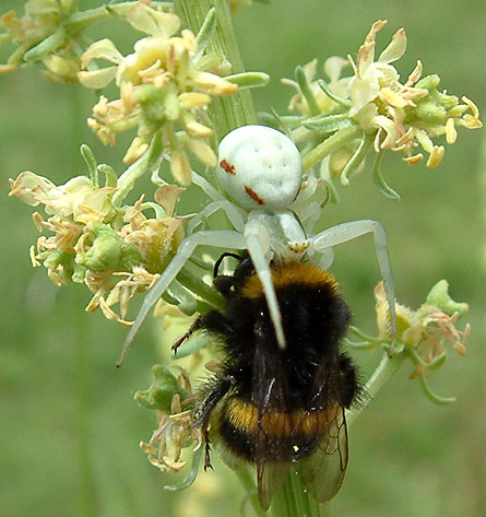 In the real world, the big, hard-bodied bumblebees with plenty of flight power represent a considerable challenge for crab spiders. Most of the time, the bee escapes from the attack and has a chance to learn, Ings says.